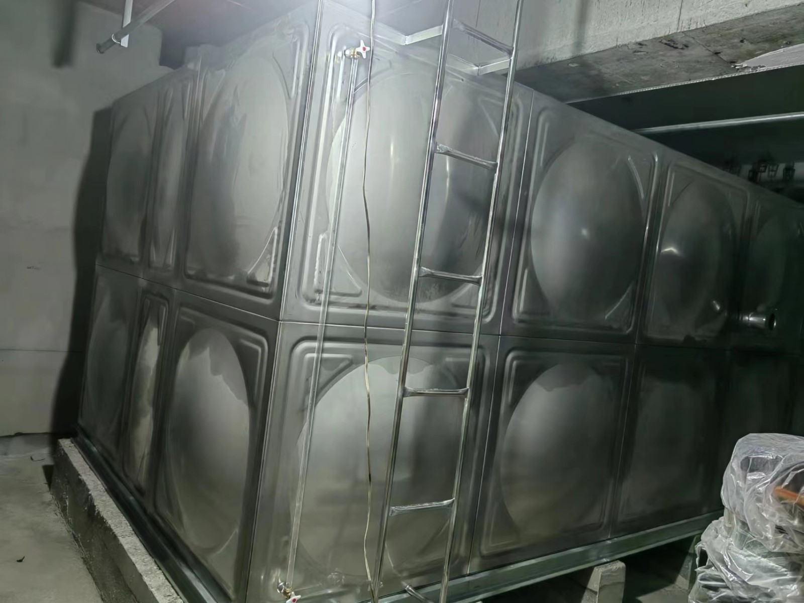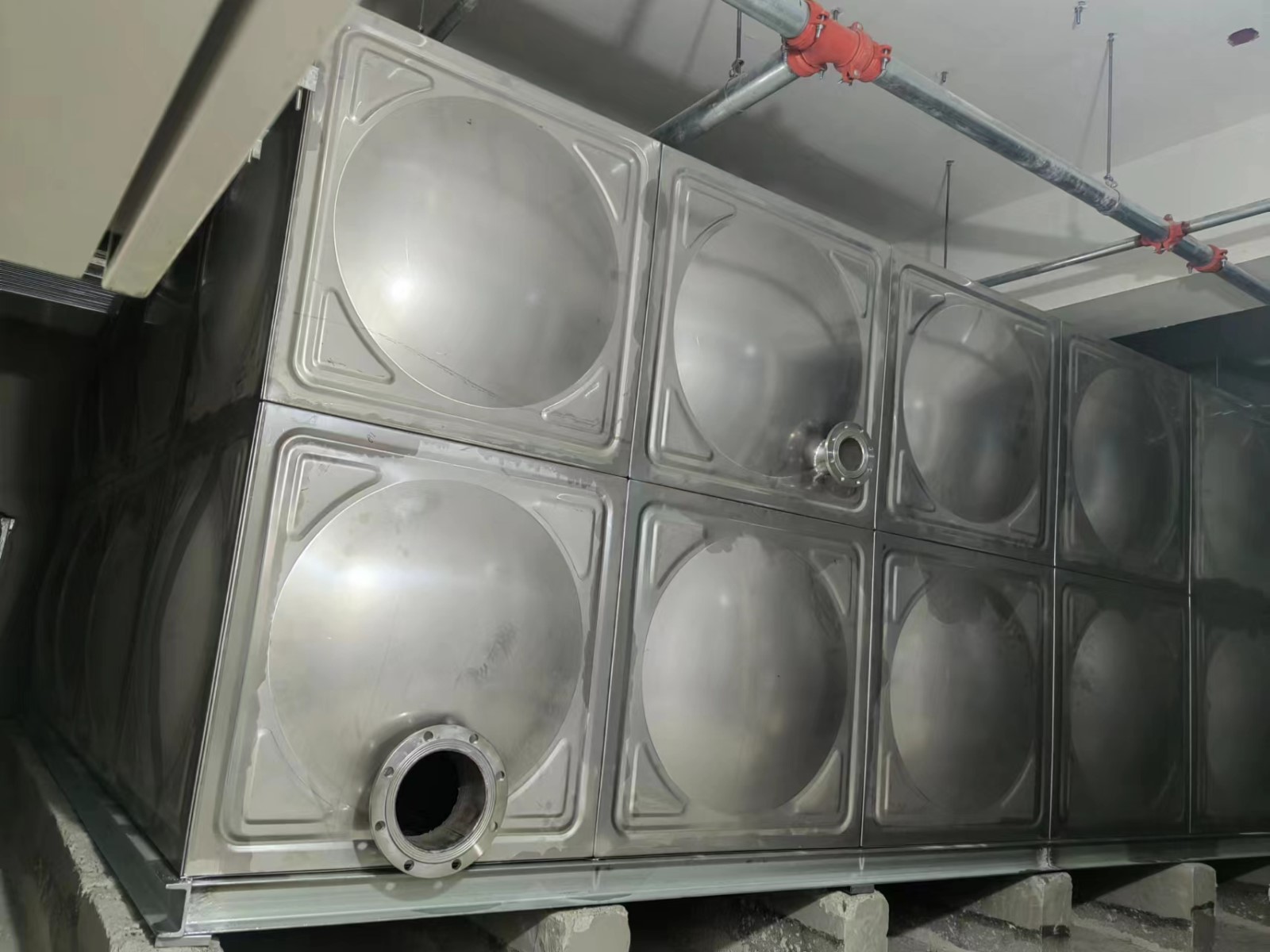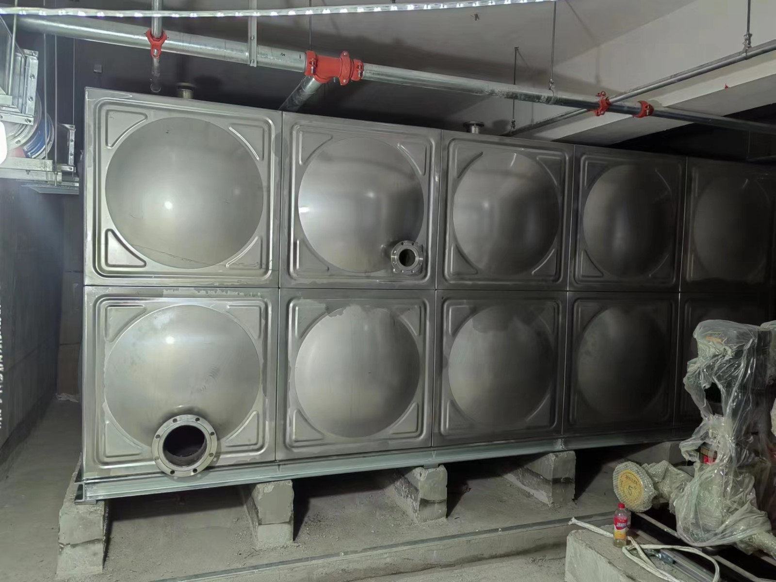 我司承接的北京市大興區舊宮合生項目,不銹鋼生活給水及中水水箱,已安裝試水完畢。不銹鋼焊接水箱,是指容器本體用不銹鋼板沖壓帶一定凹凸形狀,使之鋼度大大提高,再焊接成薄殼箱體的新型水箱,是目前國內較先進、較美觀、較適用的水箱,其結構精巧、合理、先進,用材省,可在民用及工業建筑中廣泛采用,是儲存、調節用水的理想設備。