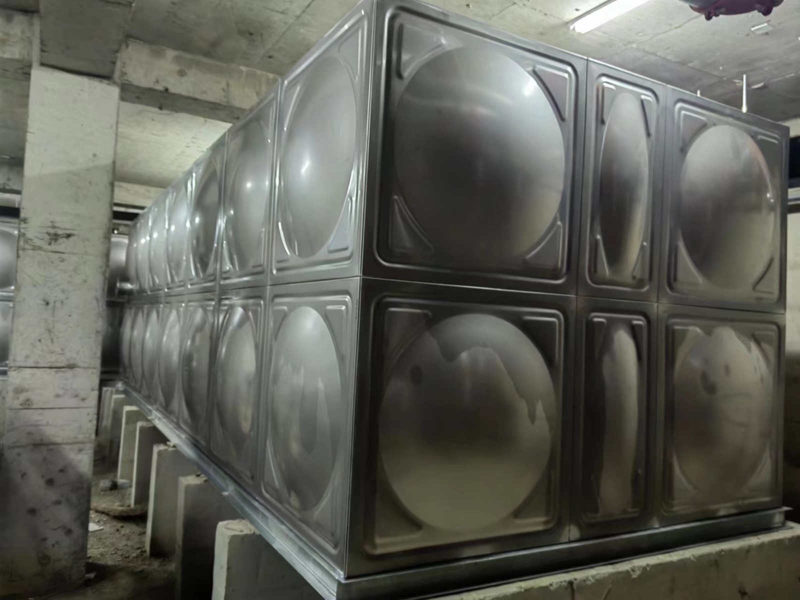 我司承接的河北省廊坊市榮盛首府給水水箱項目項目,已安裝試水完畢。不銹鋼水箱既貯存冷水,也能貯存熱水,耐酸、耐堿、不易滲漏,不易變形、耐腐蝕。適用于醫院,賓館,學校,居民樓及食品加工,醫療衛生等對水質要求加高的場所。