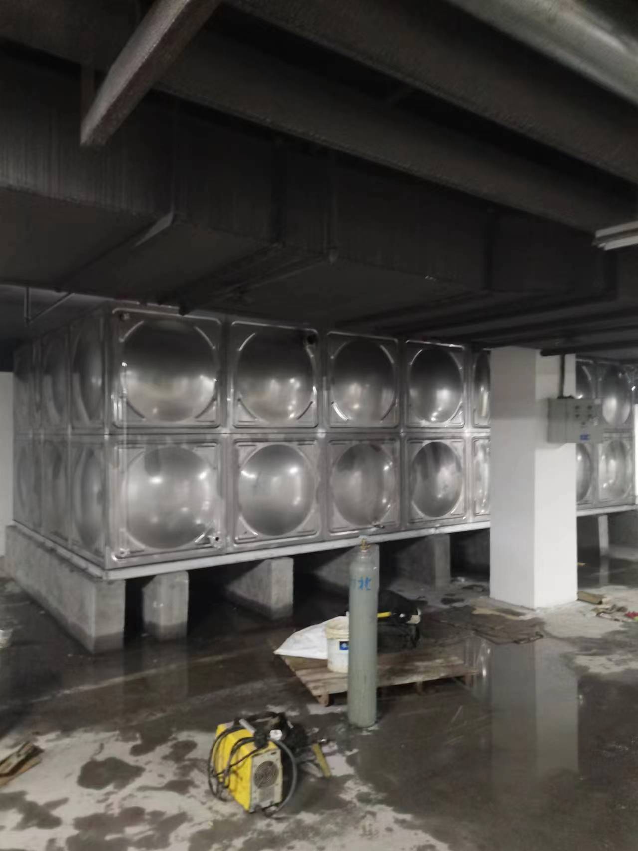 我司承接的河南省商丘市睢陽區吾悅廣場人防水箱項目已完工,此水箱采用的是SUS-304不銹鋼材質。不銹鋼水箱是由單元矩型模壓板制作而成的,通過材料變型的方法達到強度的效果,還可以任意拼裝,利用少的耗材做成完成品,這樣節能又環保。