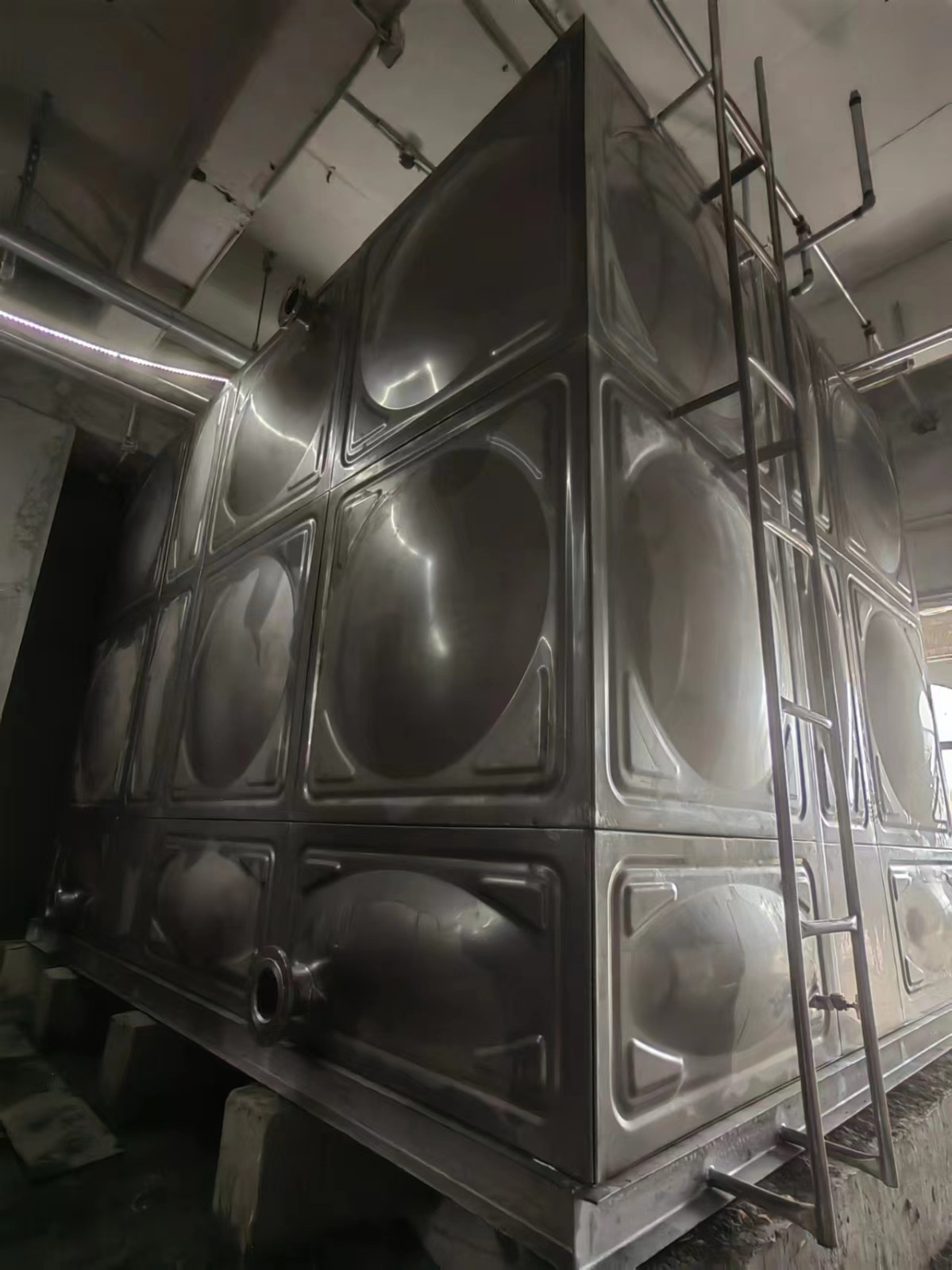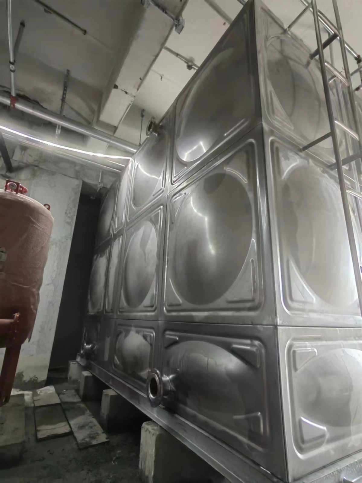 我司承接的北京市懷柔區雁棲湖景區(中建一局消防水箱)項目現已完工。不銹鋼水箱由高強度的沖壓板塊及箱內分布均勻的不銹鋼拉筋使箱體增加了六倍的強度,并且受力均勻。水箱由單元矩形的薄板和凹凸板拼裝焊接而成,裝置簡便,便于運輸,無需大型吊裝設備,不同容積均可現場組裝。