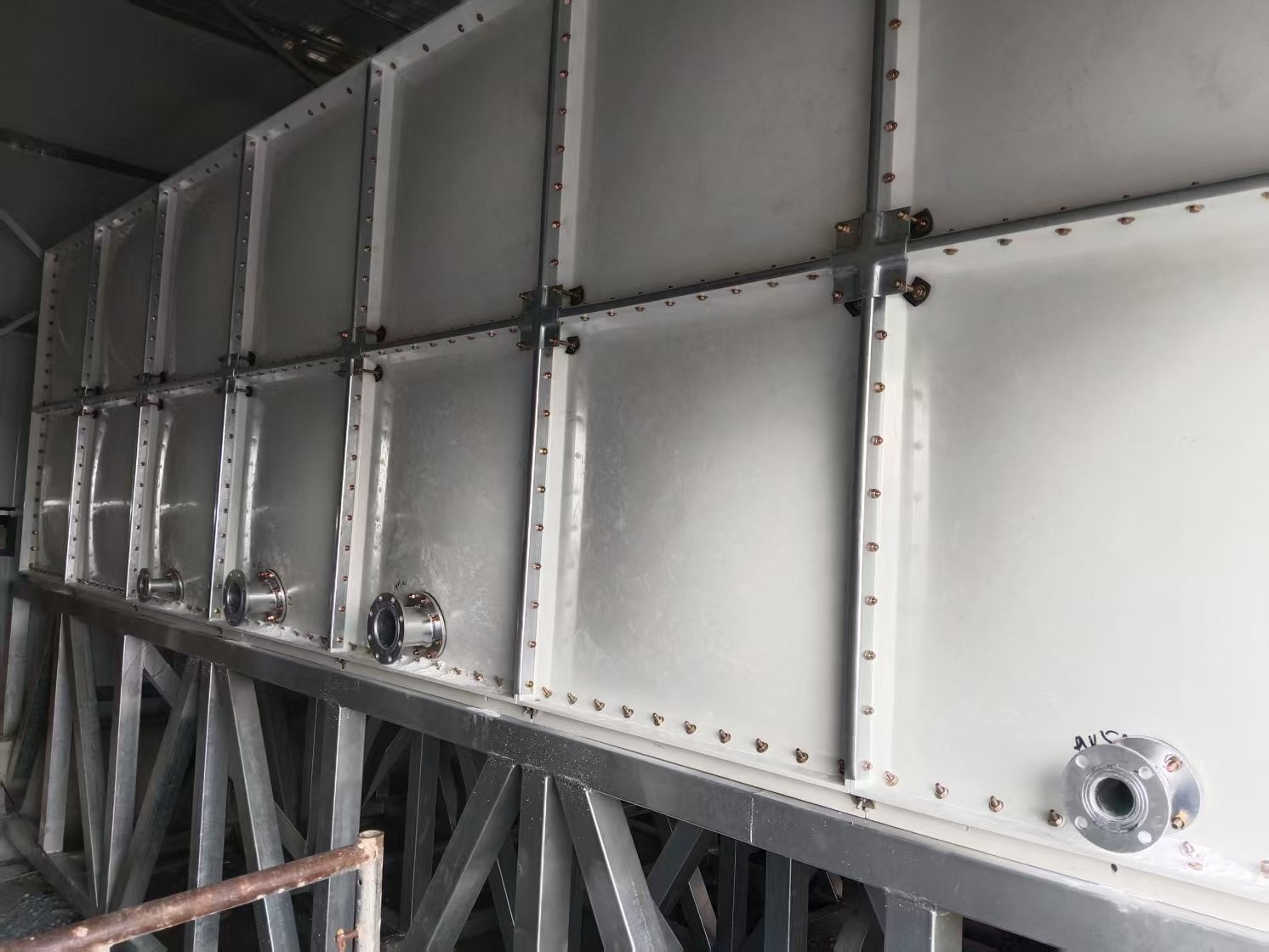 公司我司承接的天津市西青區梅江燈飾廣場消防水箱項目SMC玻璃鋼水箱已經安裝試水完成。 玻璃鋼消防水箱選用優質樹脂為制作原料,加上優良的模壓生產工藝制作而成,具有重量輕、無銹蝕、不滲漏、水質好、使用范圍廣、使用壽命長、保溫性能好,外形美觀、安裝方便、清洗維修簡便、適應性強等特點,是作為公共生活用水、消防用水和工業用水貯水設施的理想產品。